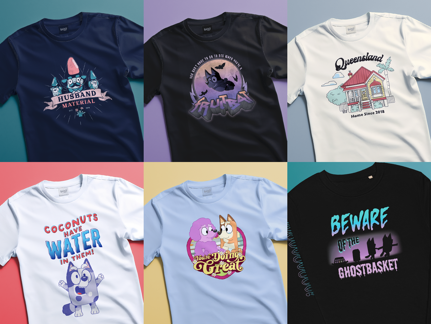 Bluey shop collections are designed for fans of all ages to wear their love for Bluey on their sleeves. From fancy ladies to fruitbats – these products are made just for you!