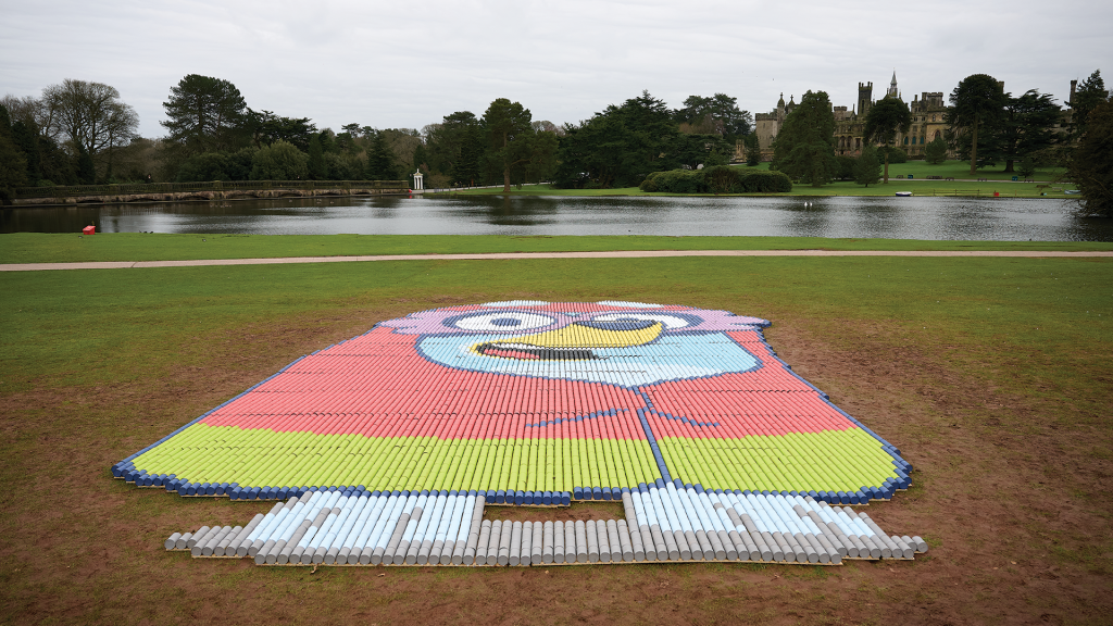 Alton Towers Resort has unveiled a giant portrait of Bluey made from over 11,000 baked bean cans to announce the opening date of the world’s first Bluey rollercoaster at CBeebies Land.