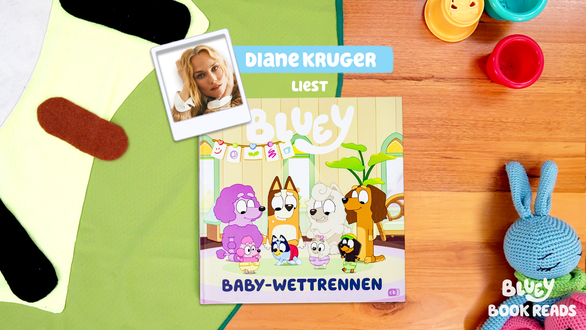 Actress Diane Kruger reads a very special Bluey book: “Baby Race”. In this story, Mum tells the girls how Bluey learned everything for the first time as a baby.