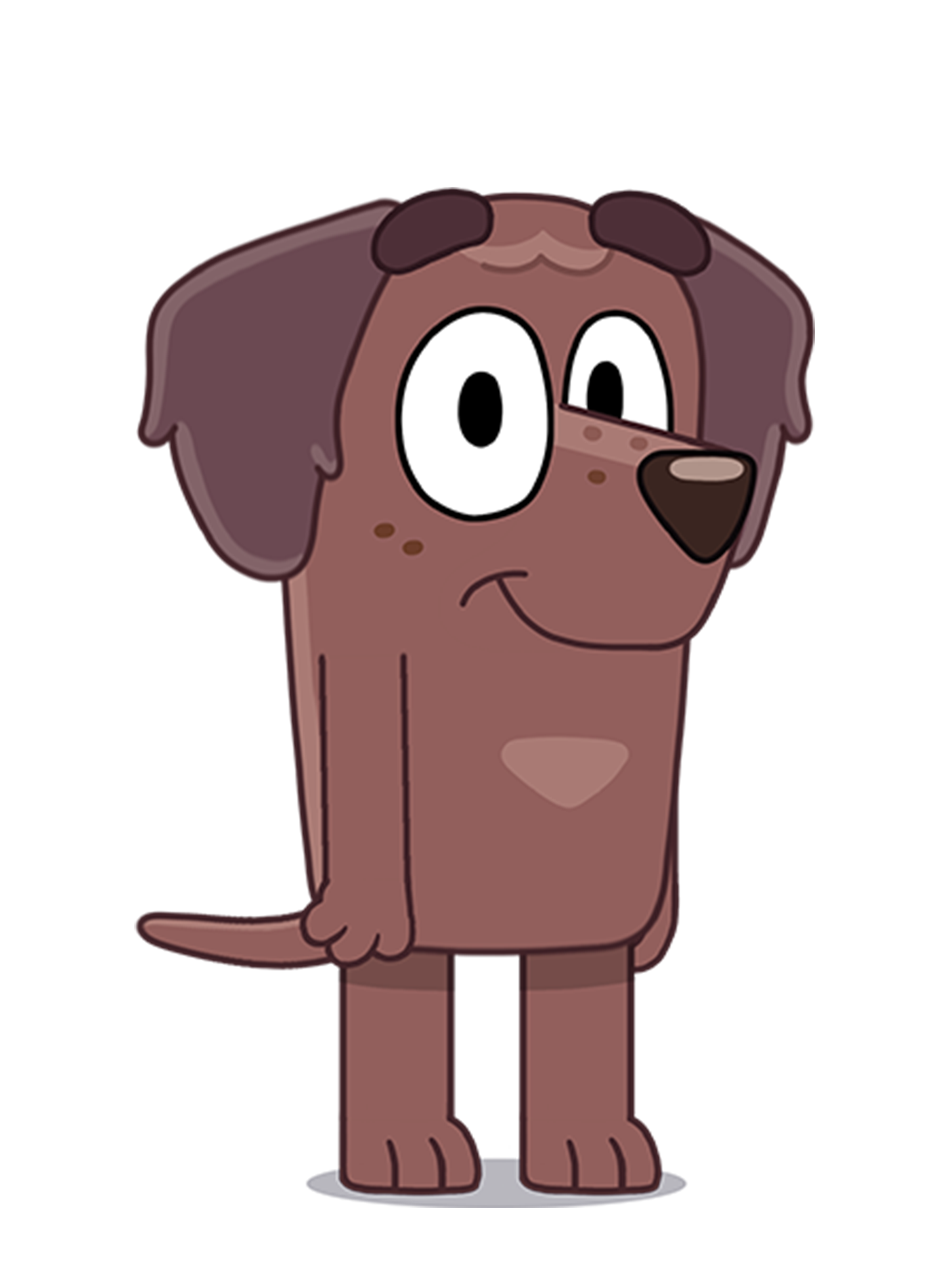 Winnie is a chocolate labrador who Bluey meets at the park. She’s often there with her Dad, Fido, and has a sister that likes sleep ins – just like Bluey. She also has a vivid imagination and likes budgies, piggybacks and playing make-believe (just like Bluey).