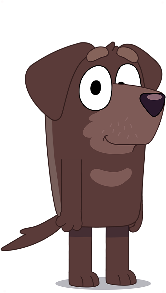Winnie is a chocolate labrador who Bluey meets at the park. She’s often there with her Dad, Fido, and has a sister that likes sleep ins – just like Bluey. She also has a vivid imagination and likes budgies, piggybacks and playing make-believe (just like Bluey).