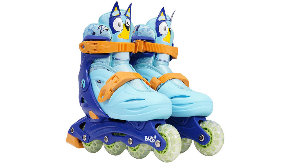 If you have a kid who’s eager to learn how to skate, these 4-wheel training skates will get them moving in no time. With larger back wheels to help with balance, and a lace-free design that they can easily slip on independently, they’re a great first step on the road to roller glory. Bluey and Bingo feature all over the uppers, which are fully adjustable to help with longevity.