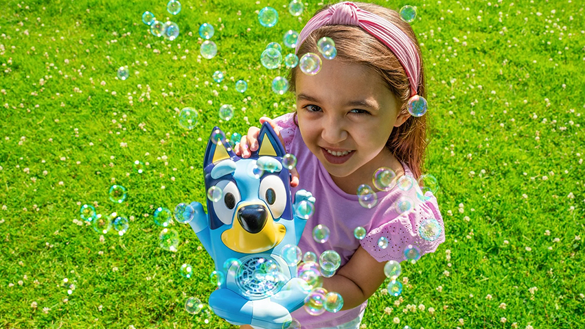 What’s better than bubbles? How about LOADS of bubbles! Here, Bluey is transformed into a no-spill bubble machine that sends hundreds of bubbles into the air, all while playing the Bluey theme song. The machine does require 3 x AAA batteries and these are not included, so stock up when you buy to avoid disappointment.