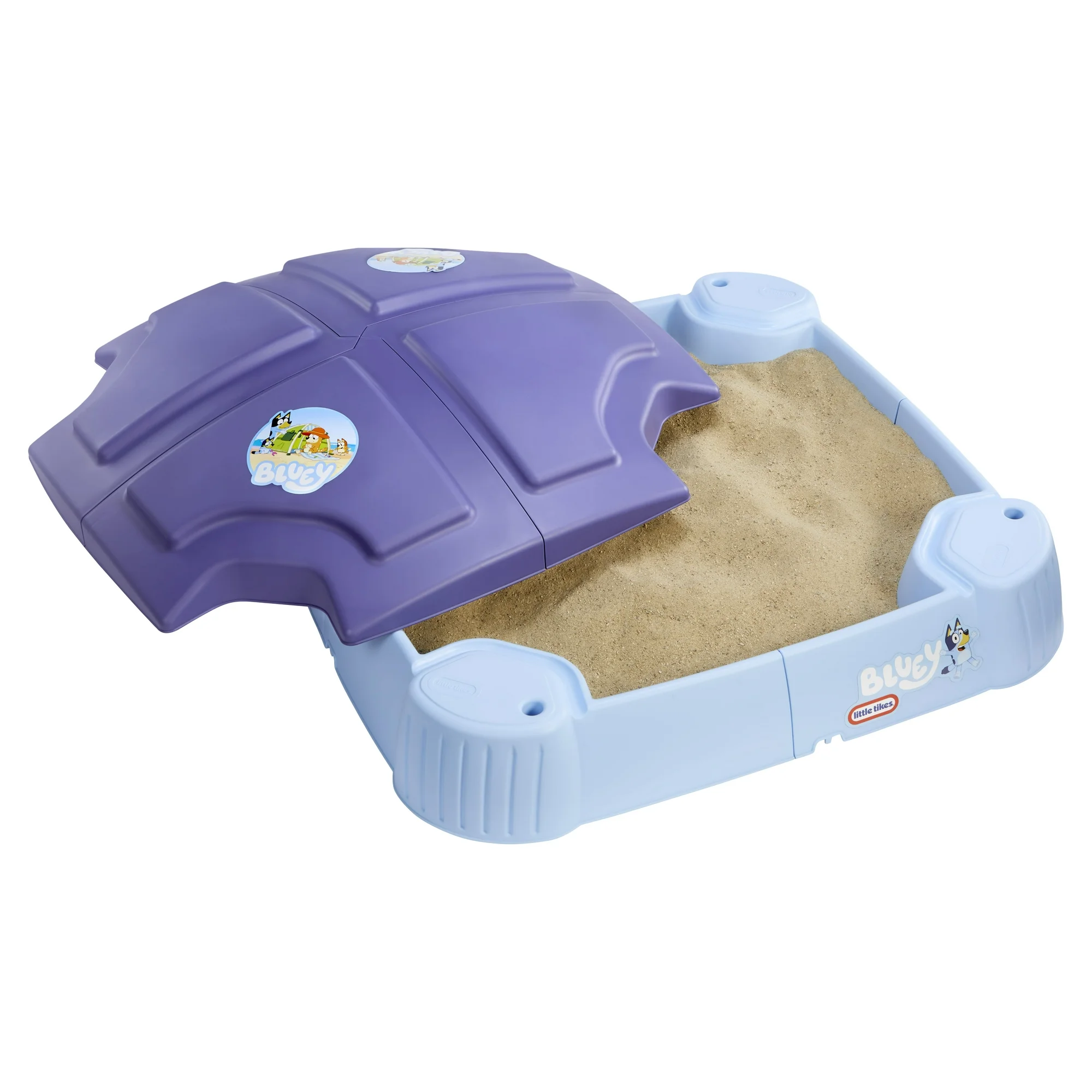 Includes: Sand pit with lid, Bluey mould, spade, rake, bucket, seagull roller and crab