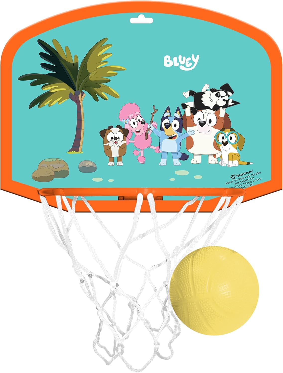 Includes: Bluey basketball hoop, net, mounting bracket and plastic ball