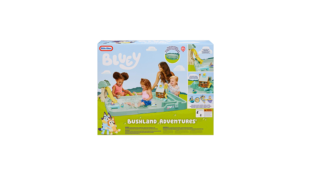 New way to play: Who says the fun has to stop with just water? Bluey, Bingo and Grandad use mud for camouflage when they’re hiding from mum, and there’s no reason this pond can’t get a bit muddy too. Just remember to hose everything off once play is over…kids included!