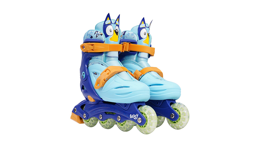 If you have a kid who’s eager to learn how to skate, these 4-wheel training skates will get them moving in no time. With larger back wheels to help with balance, and a lace-free design that they can easily slip on independently, they’re a great first step on the road to roller glory. Bluey and Bingo feature all over the uppers, which are fully adjustable to help with longevity.