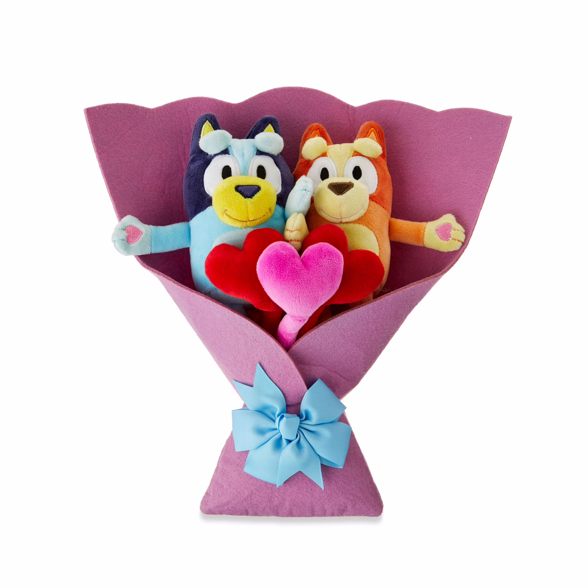 A super sweet way to gift plush toys to adults – and make them even more special – Bluey and Bingo become part of a bouquet in this great value gift. You’ll get two miniature plushes along with 3 small heart “blooms”, all packaged in a felt wrapper with a bow. They’re a really cute alternative to flowers that will last a lot longer.