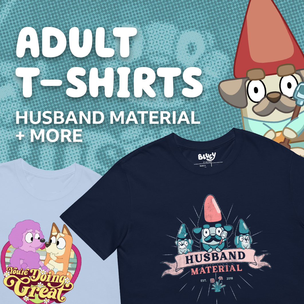 Bluey merch for fans of all ages to wear their love for Bluey on their sleeves! Explore designs and t-shirts made for adults who love Bluey just as much as any kiddos (and maybe more!)