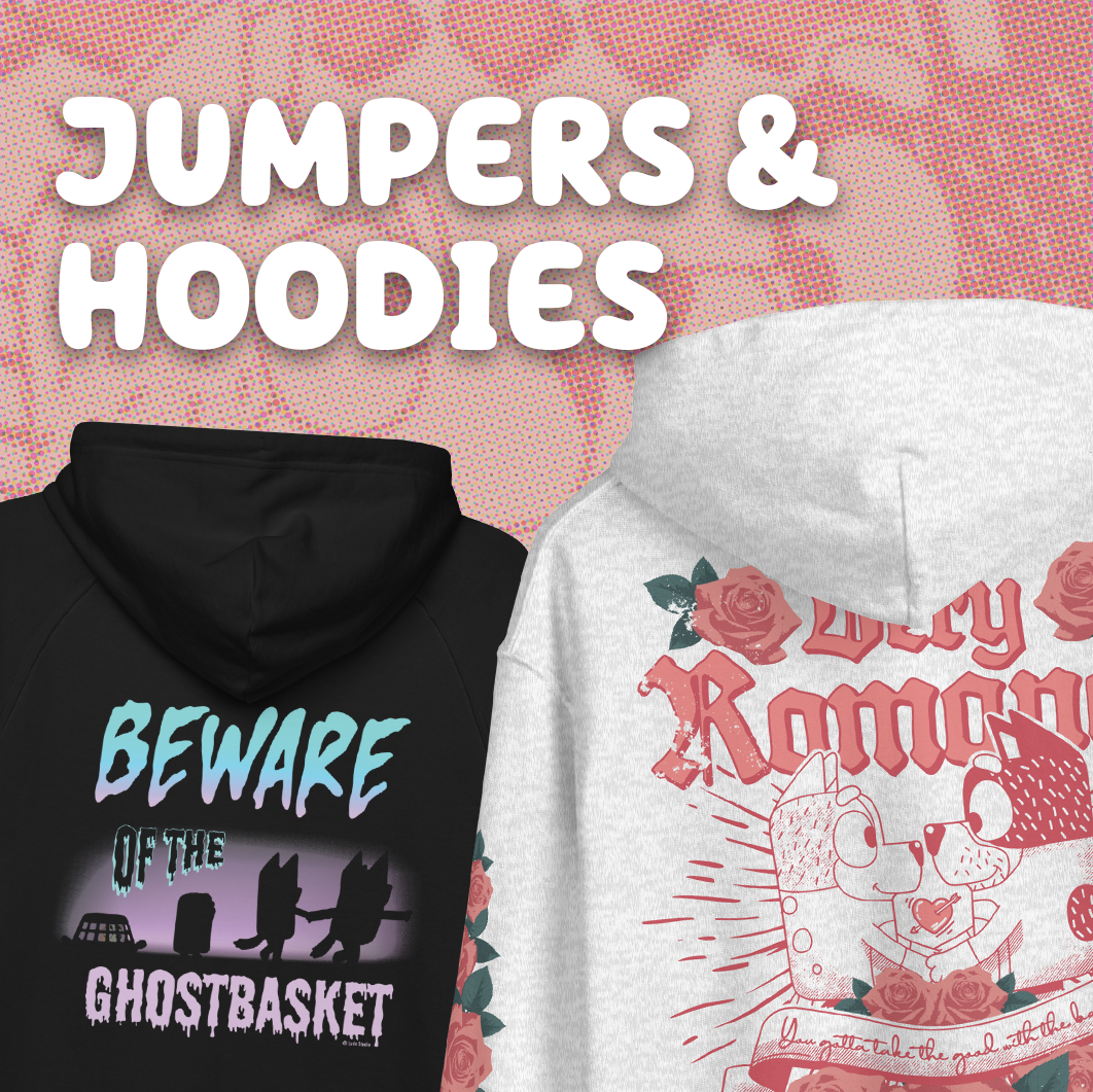 Bring the comfort of the Heelers home with these equally trendy and cosy jumpers, hoodies and more inspired by your favourite Bluey episodes.