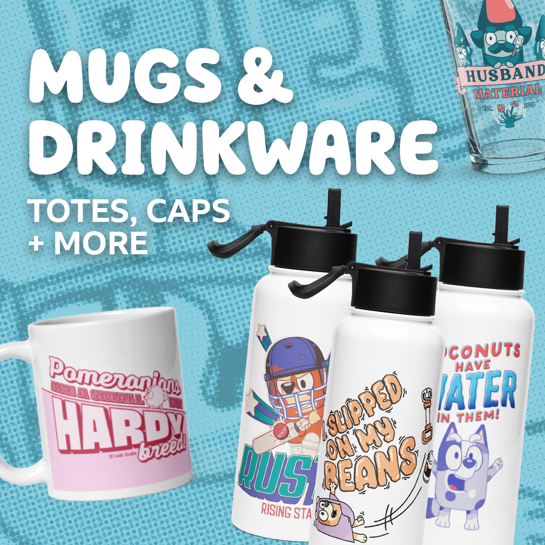 Whether you’re cooling off after a big day of play or settling down for a warm cuppa; bring a little bit of Bluey to your day with these specially designed mugs, water bottles, travel mugs and more!
