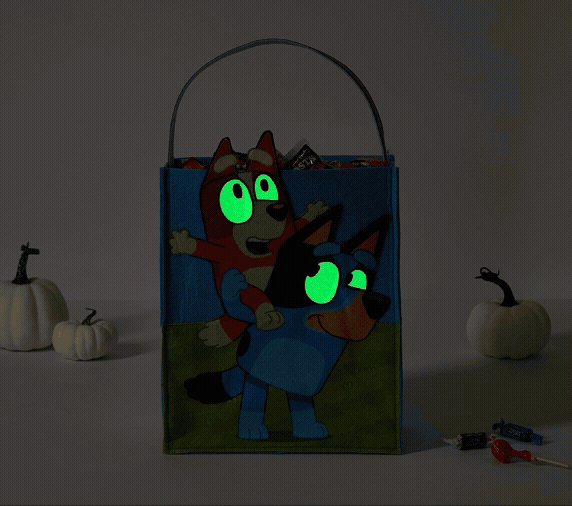 Little fans can show their love of Bluey even if they have other costume plans, by toting this sweet trick-or-treat bag when they head out on Halloween night. The reusable bag is made from felt, and the eyes are glow-in-the-dark, so you’ll be able to spot Bluey and Bingo even after the sun goes down. The fabric needs to be charged up under bright light before you head out, so remember to set it out early to avoid disappointment. It should last a good 3 hours or so once it begins to glow.