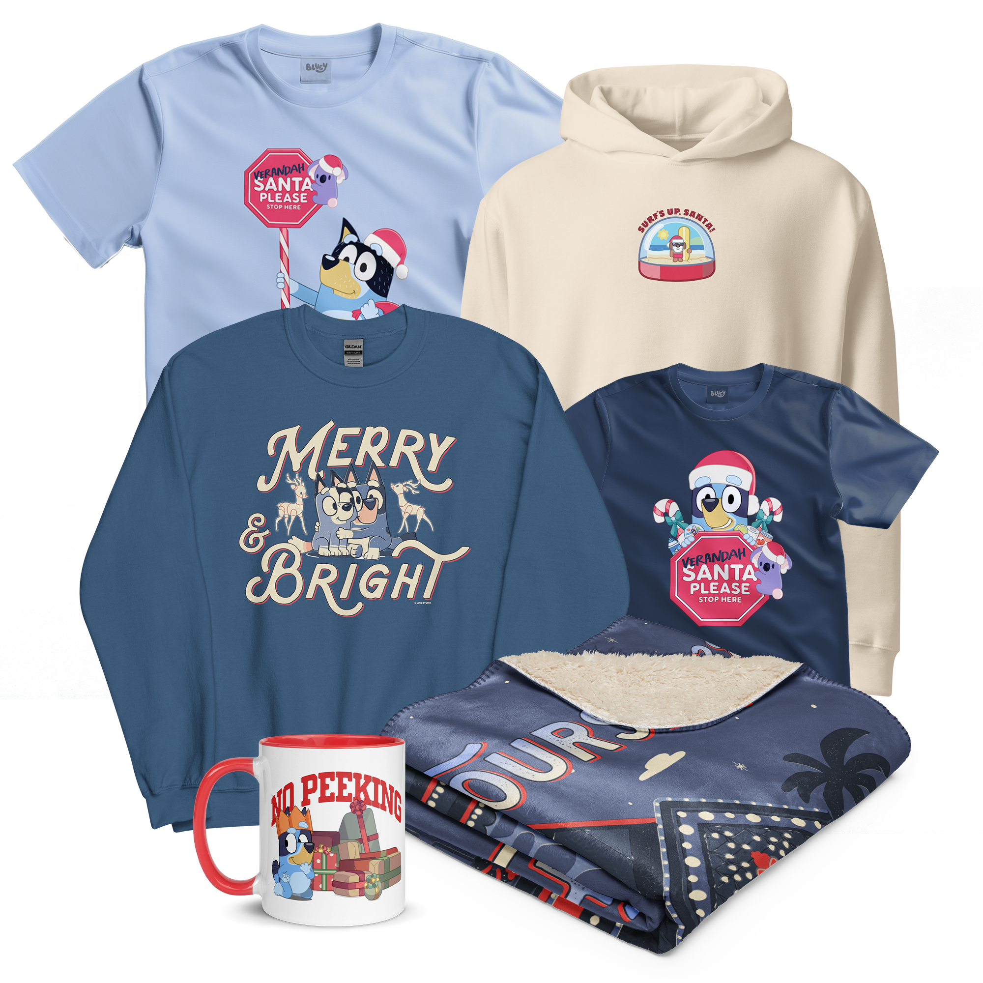 Bluey shop collections are designed for fans of all ages to wear their love for Bluey on their sleeves. From fancy ladies to fruitbats – these products are made just for you!