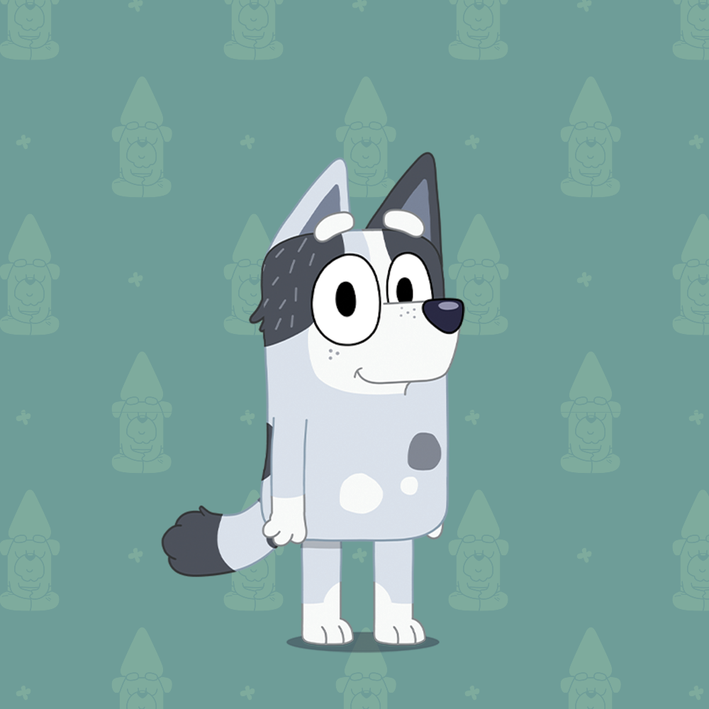 マフィンはブルーイとビンゴのいとこ。おともだちとのじょうずなあそびかたをまなんでいるよ。
