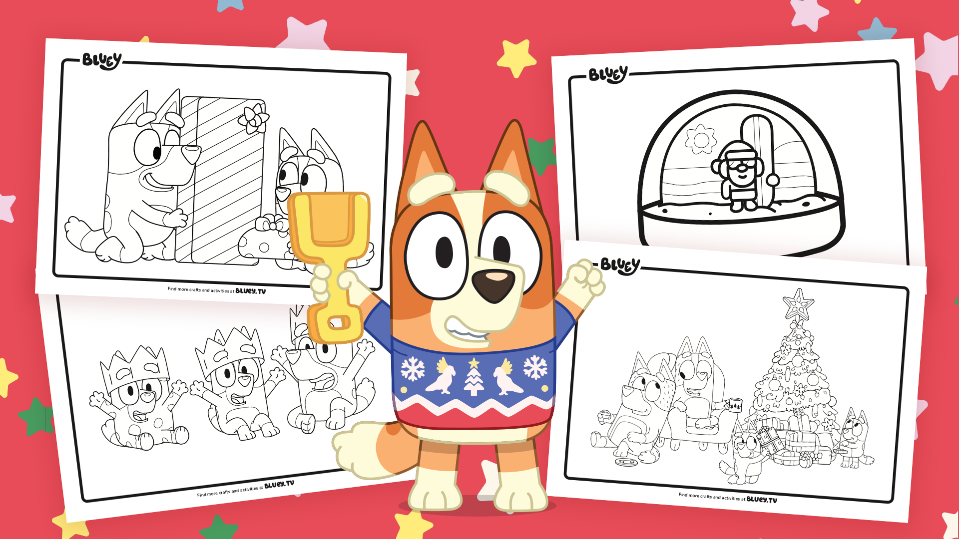 Dive into festive fun with Bluey and her family! The perfect moment for artists of all ages to bring their favourite Bluey characters to life in time for Christmas!