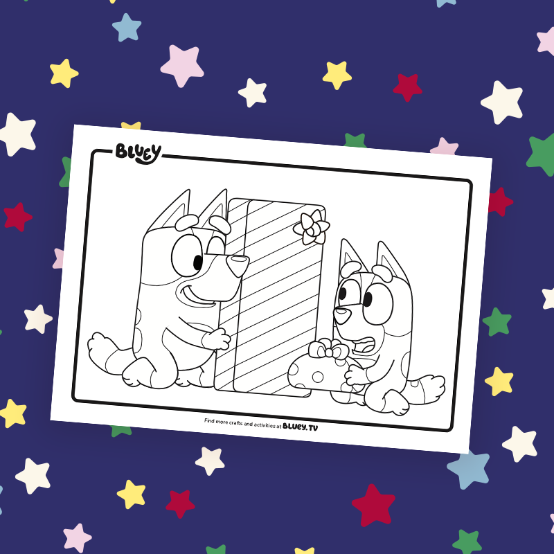 Bring Bluey and Bingo’s magical gift-opening moment to life with your brightest colours!