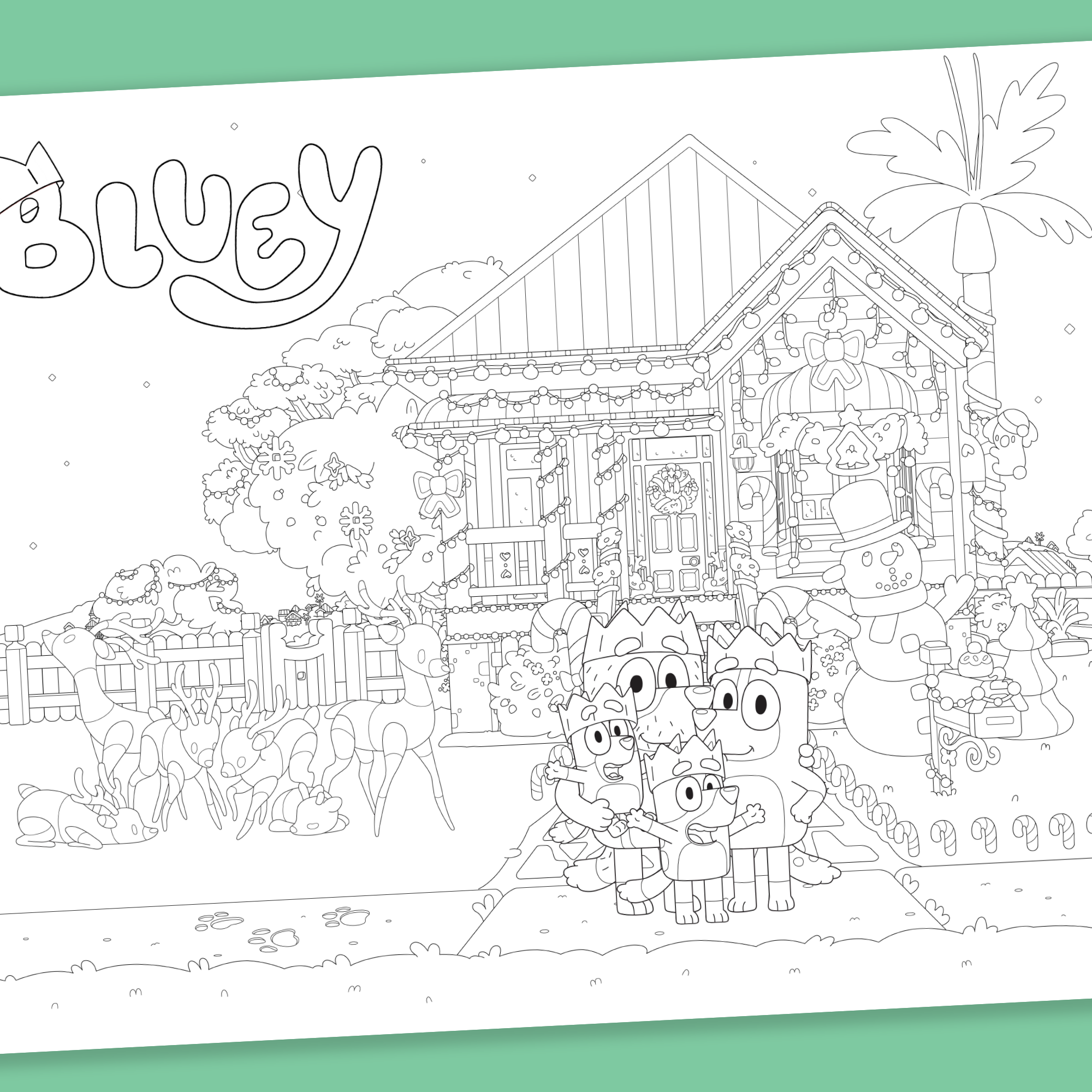 Unwrap and Unwind with this festive Bluey scene made especially for Adults and big kiddos to colour in and chill out this Christmas.
